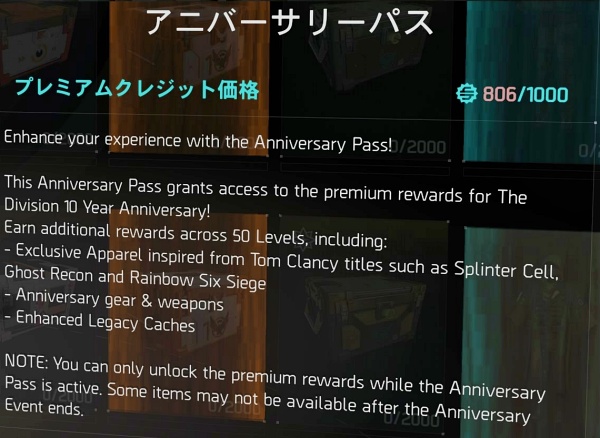- 『ディビジョン2』:アニバーサリーシーズン詳細