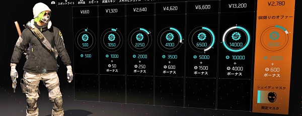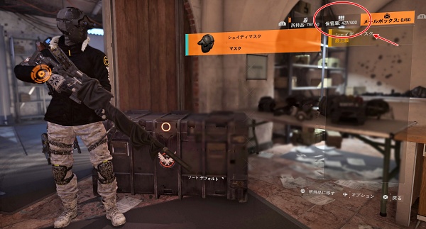 シーズンパスバンドルを購入し、マスクと上記画像赤丸内保管庫上限アップを入手。