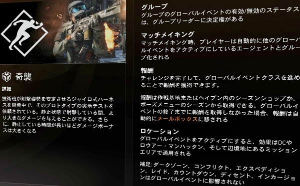 初代『ディビジョン』でお馴染みだった2つの『GE/グローバルイベント』、『Ambush/アンブッシュ』 と 『Assault/アサルト』が復活します。