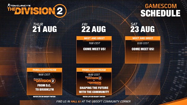 ・ドイツで開催される『Gamescom/ゲームズコム』にて、『The Division 2』やモバイル向けの『Resurgence/リサージェンス』、そしてシリーズのアートに関するパネルディスカッションが実施される予定。