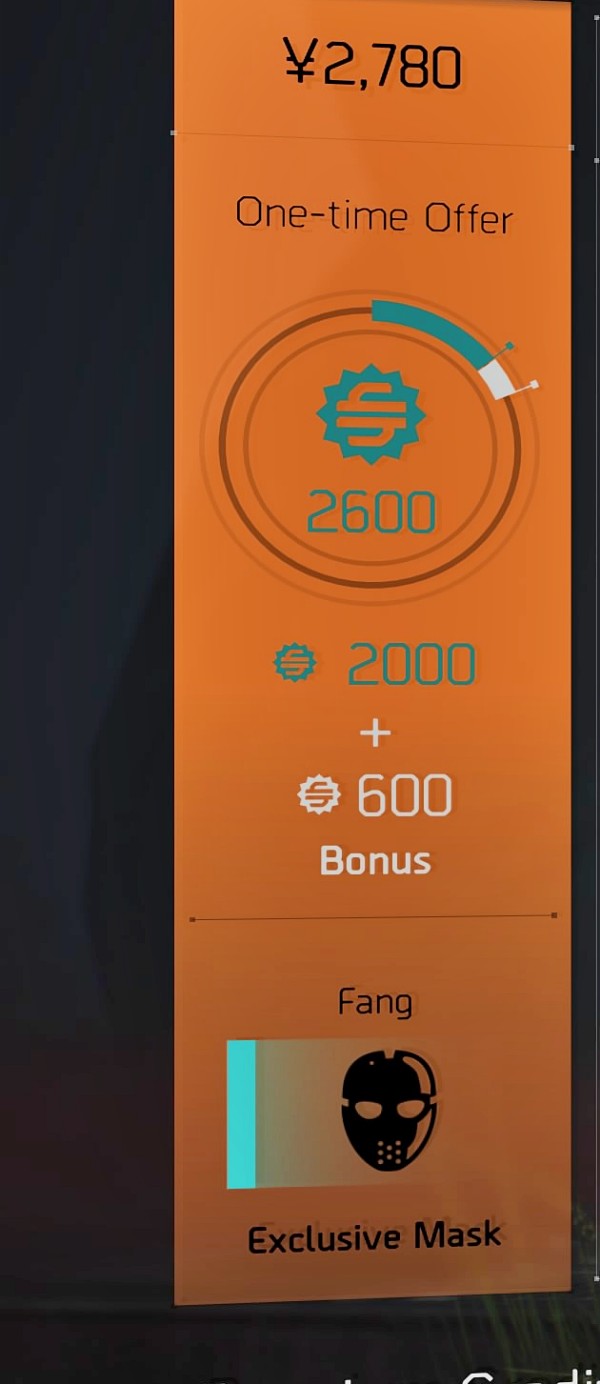この限定ワンタイムオファーをお見逃しなく。価格は$19.99(または地域に応じた相当額)で、2000プレミアムクレジットに加え、ボーナスとして600クレジットが付属します。