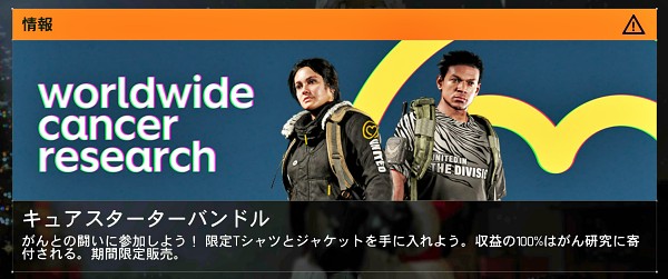 【ディビジョン2】『Worldwide Cancer Research/キュアスターターバンドル』について
